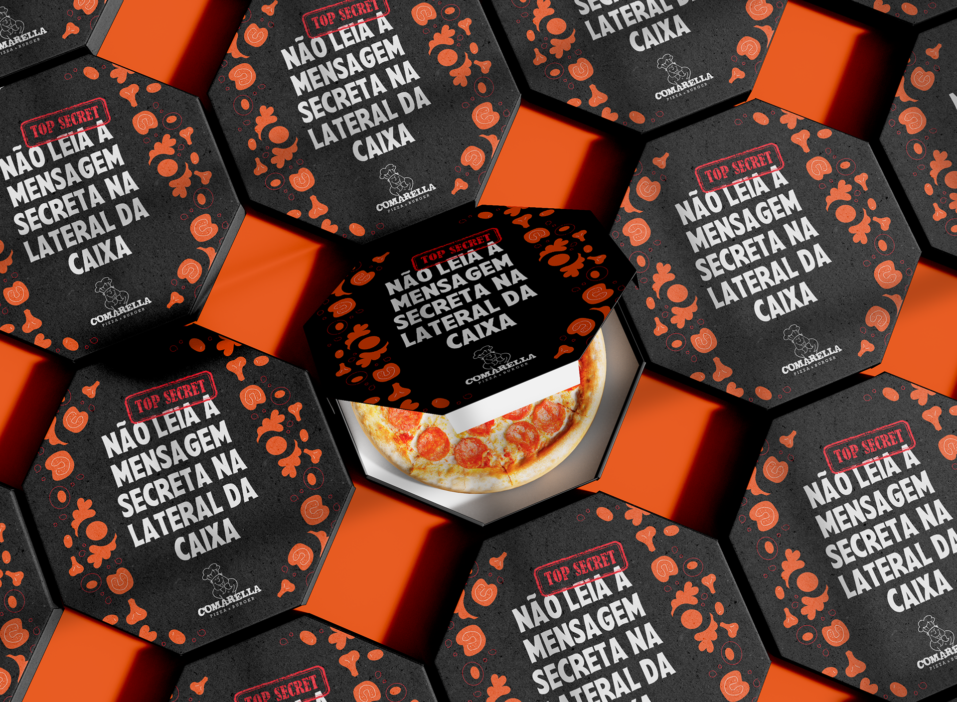 Em comemoração aos 30 anos de tradição da Comarella, o desafio era criar uma embalagem de pizza interativa e criativa que não apenas celebrasse a história da marca, mas também proporcionasse uma experiência única aos consumidores. O design deveria refletir a essência artesanal e familiar da Comarella, ao mesmo tempo que surpreendesse os clientes, destacando-se no mercado e incentivando a participação lúdica durante o consumo.