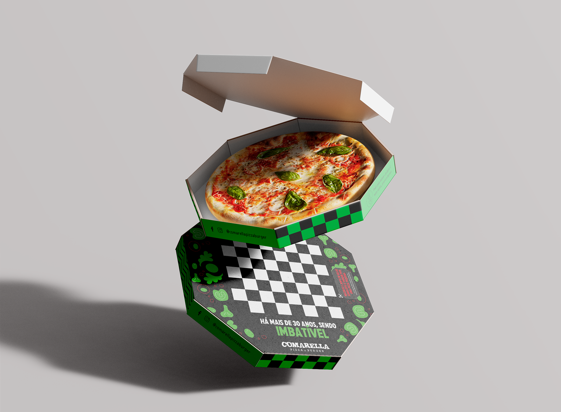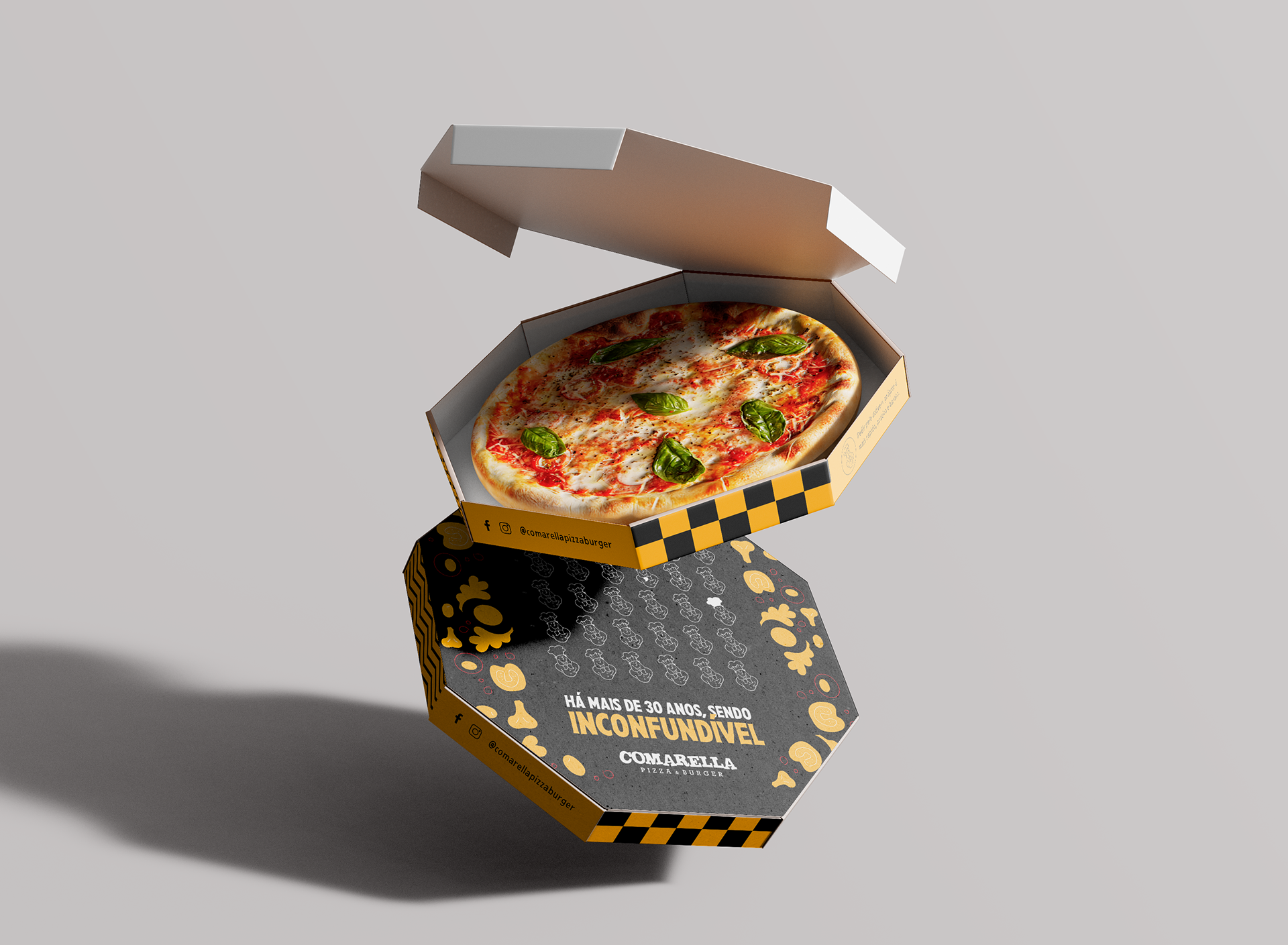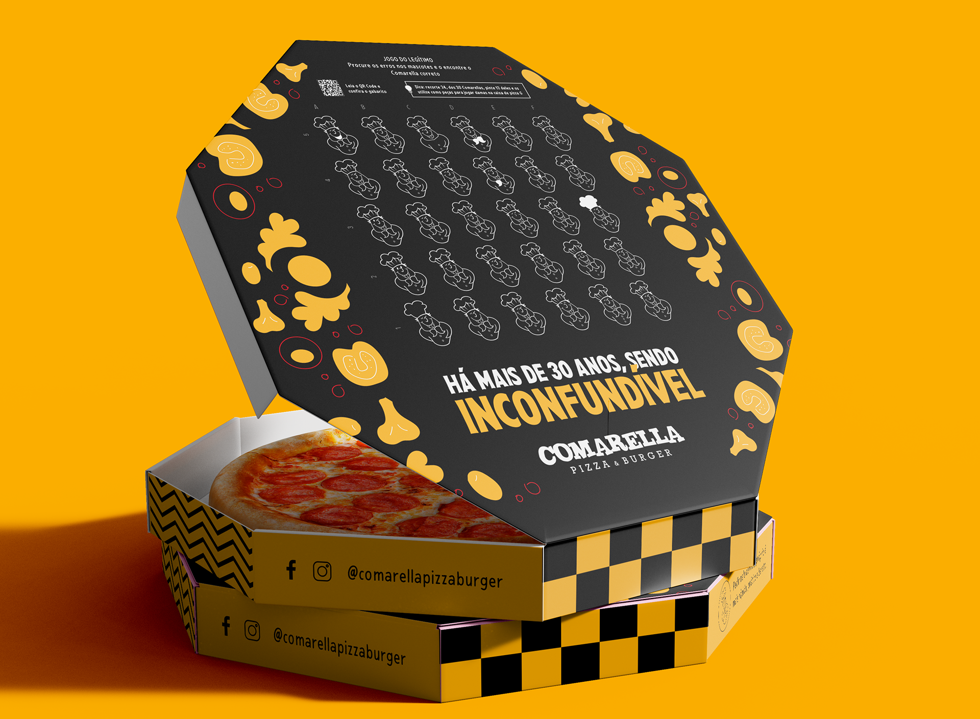 To celebrate Comarella's 30 years of tradition, the challenge was to create an interactive and creative pizza box that not only commemorated the brand's history but also provided a unique experience for customers. The design needed to reflect Comarella’s artisanal and family essence while surprising customers, standing out in the market, and encouraging playful participation during consumption.